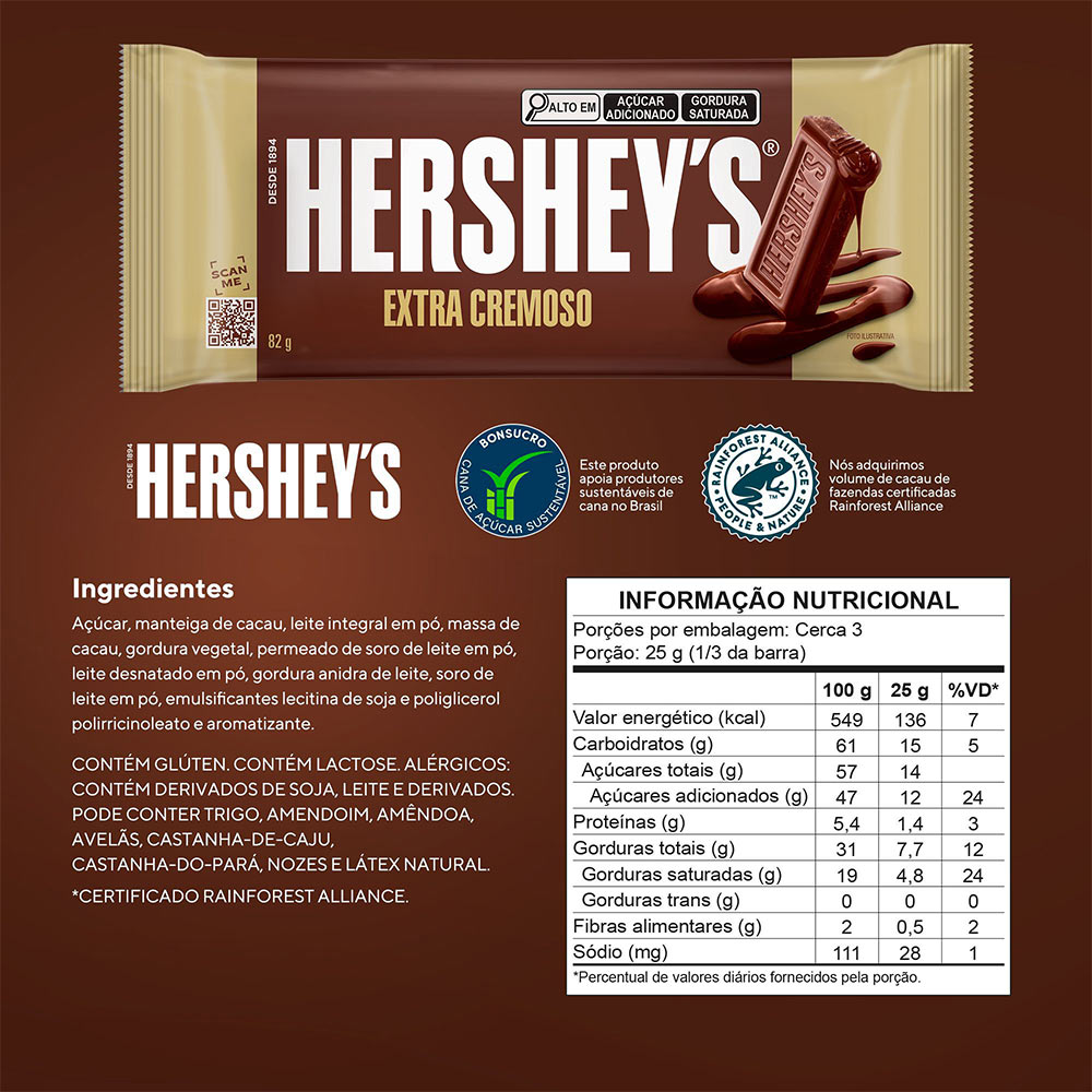 BARRA DE CHOCOLATE HERSHEYS 82G EXTRA CREMOSO